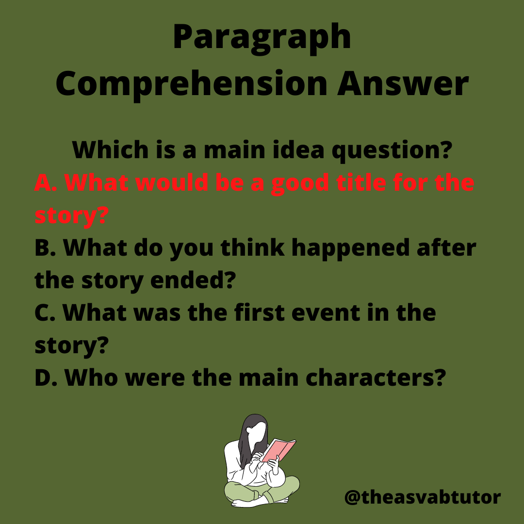 In teaching my ASVAB prep course, I discuss the different types of questions that can appear on the test. As an ASVAB tutor, I remind my students that main idea questions are one of the common types of questions on the test. The choice that is a main idea question is “What would be a good title for the story?” Did you know the correct answer to this problem?