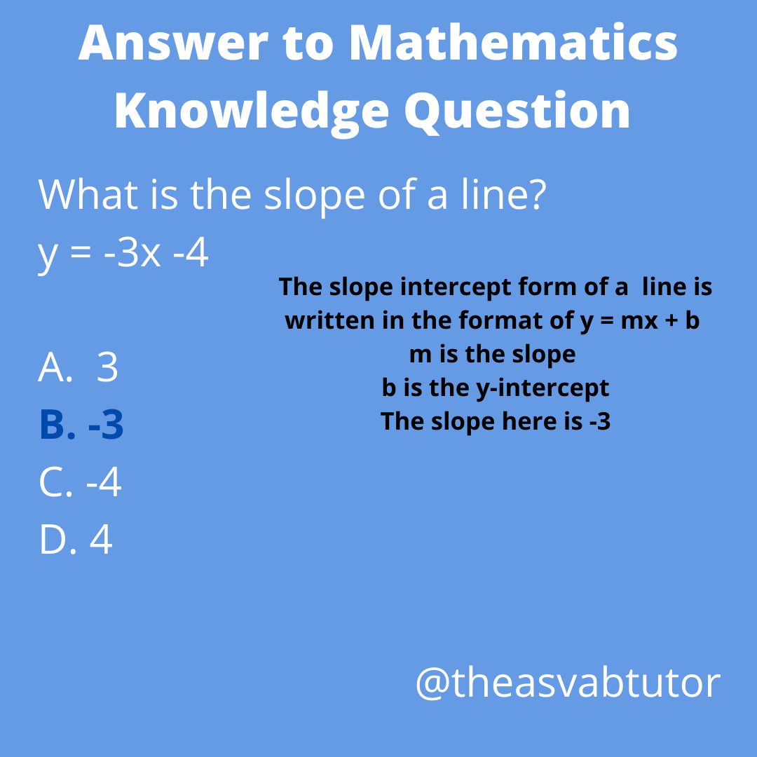 Yesterday I presented a question that is a type of question I present in my ASVAB prep course. As an ASVAB tutor, I see the importance of teaching my students about angles and slope to help improve their ASVAB math score in Mathematics Knowledge.