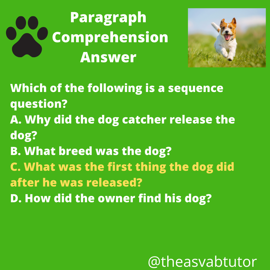 Yesterday I presented a question on sequence. Sequence is one of the types of comprehension questions that might be found on the ASVAB.