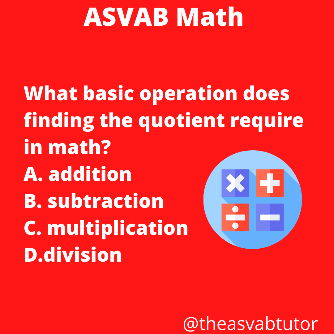 In working as an ASVAB tutor who teaches an ASVAB prep course, I remind my students of the importance of knowing math vocabulary. There are terms in mathematics that are essential to know to solve certain word problems. Examples include sum, difference, product, quotient, remainder, reciprocal, complementary, supplementary. The list goes on. Do you know what basic operation “quotient” refers to? Knowing basic math vocabulary will help to improve your ASVAB math score. The explanation will be presented tomorrow.