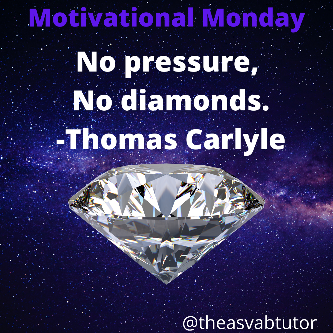In life, we experience a great deal of pressure. Good things do not come easily. Scientifically speaking, without pressure there would be no diamonds. Diamonds are crystallized carbon structures that formed beneath the surface of the earth over the course of millions or even billions of years. The process occurred due to heat and pressure. In life, we need to expect pressure. No pain, no gain. As an ASVAB tutor, I have seen the pressure my students enrolled in my ASVAB prep course experience. They have enormous pressure to earn a certain ASVAB score and to be in the best physical shape. I can help alleviate the pressure they feel in achieving the necessary math or verbal scores by providing help with ASVAB math and vocabulary. People need to realize that they should not shy away from feeling pressure. Growth never happens in our comfort zone. Pressure brings about change. Change can lead to success. I remind you to endure the pressure and appreciate the rewards of your endurance.