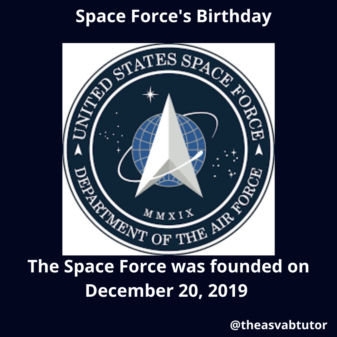 In my role as ASVAB tutor, I choose to honor various military holidays, observances, and anniversaries on my blog posts. Today, December 20 is the Space Force’s birthday.